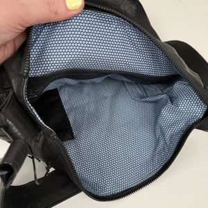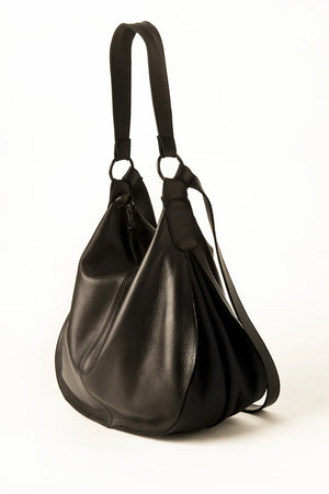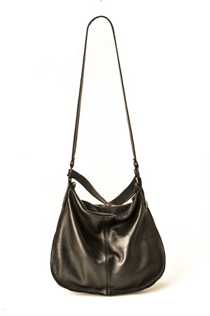 Raw edged hobo carryall. Carry it by the handle or cross over strap for ease of use.